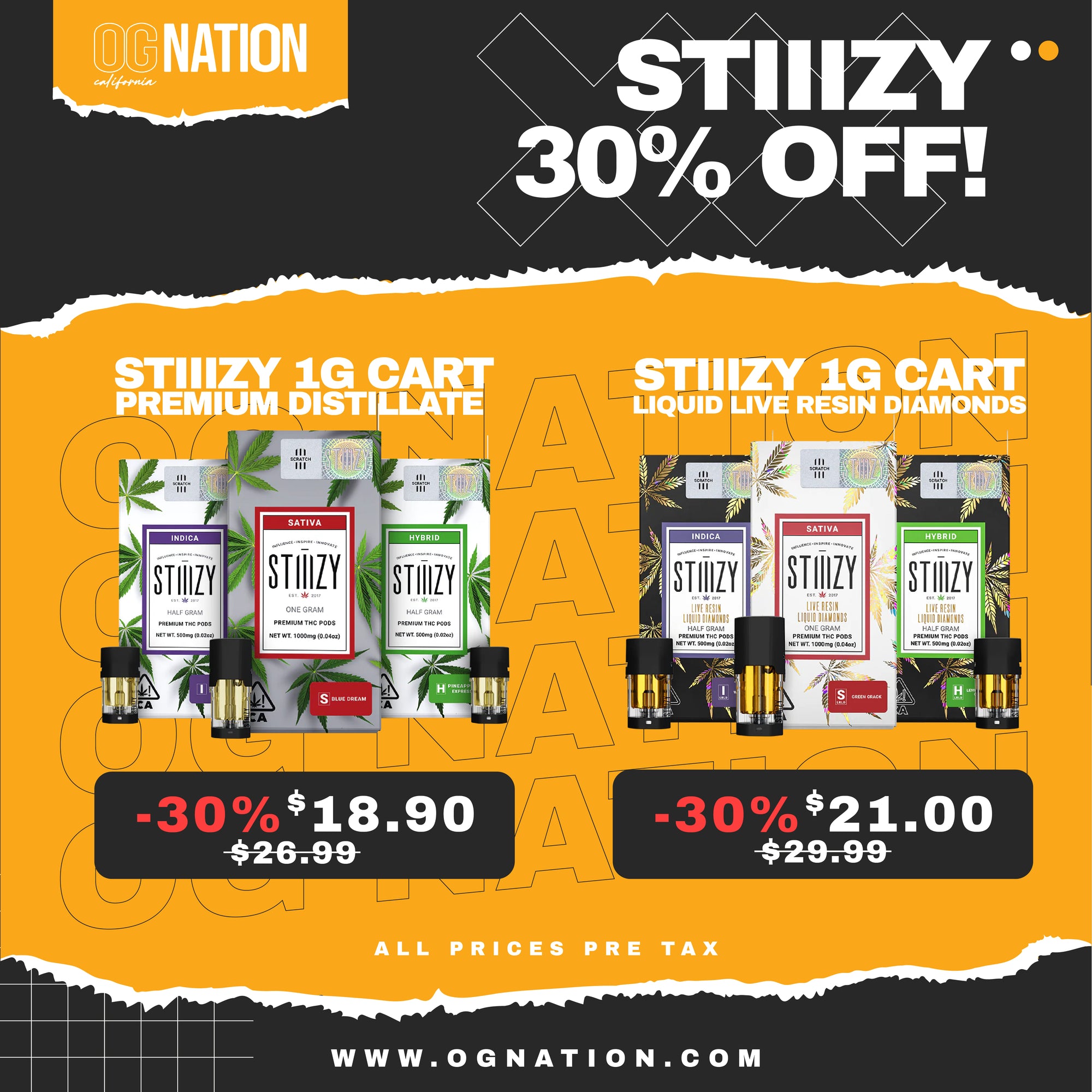 30% OFF ALL STIIIZY PODS AND DISPOSABLES ONLY